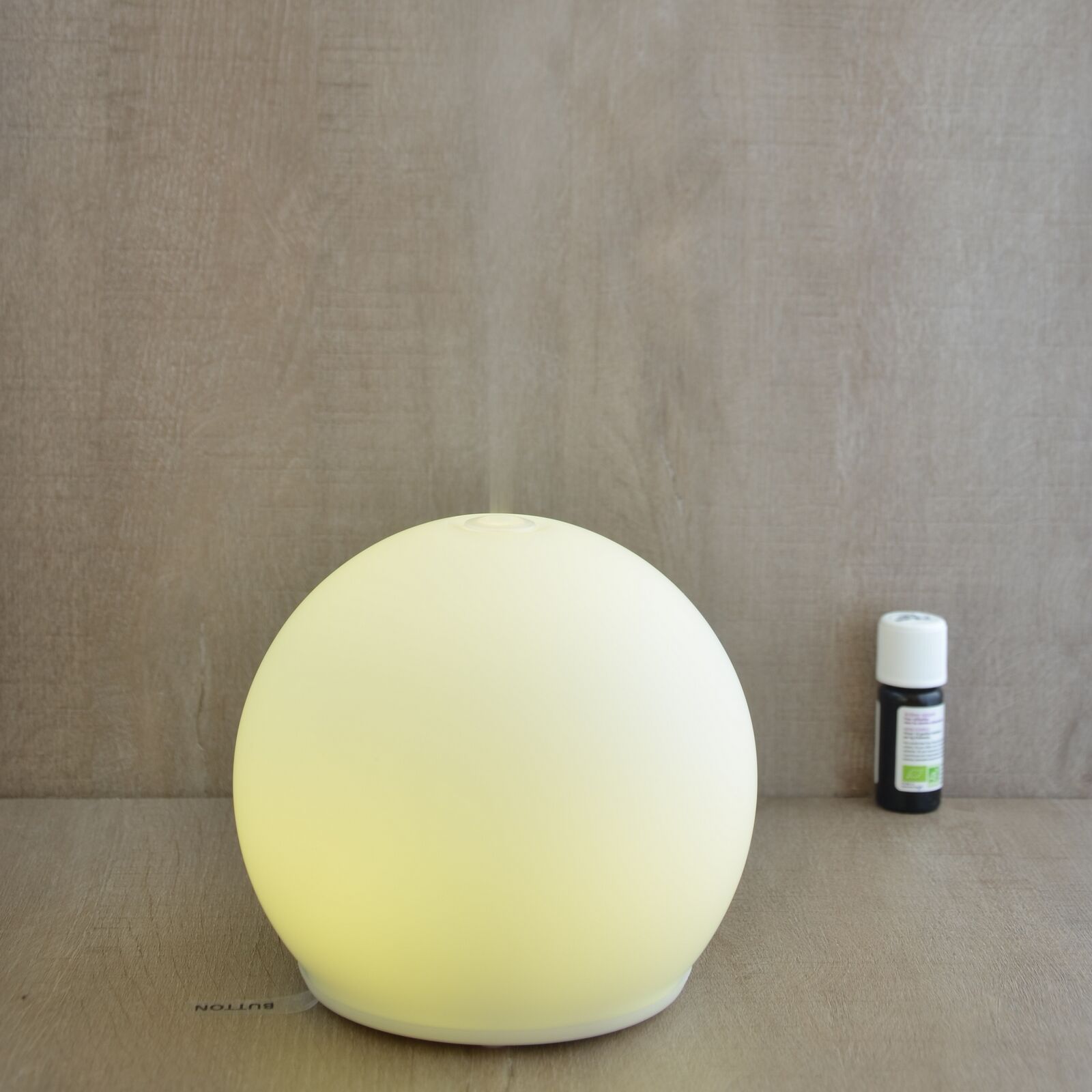 Het zorgt voor een effectieve diffusie voor een ruimte tot 40 m². De truc is om het besturingssysteem in een van de poten te hebben geïntegreerd. Druk gewoon op de glazen bol om het systeem te besturen en kies uit de verschillende bedrijfsmodi. Het profiteert ook van een automatische stop wanneer de tank leeg is.
